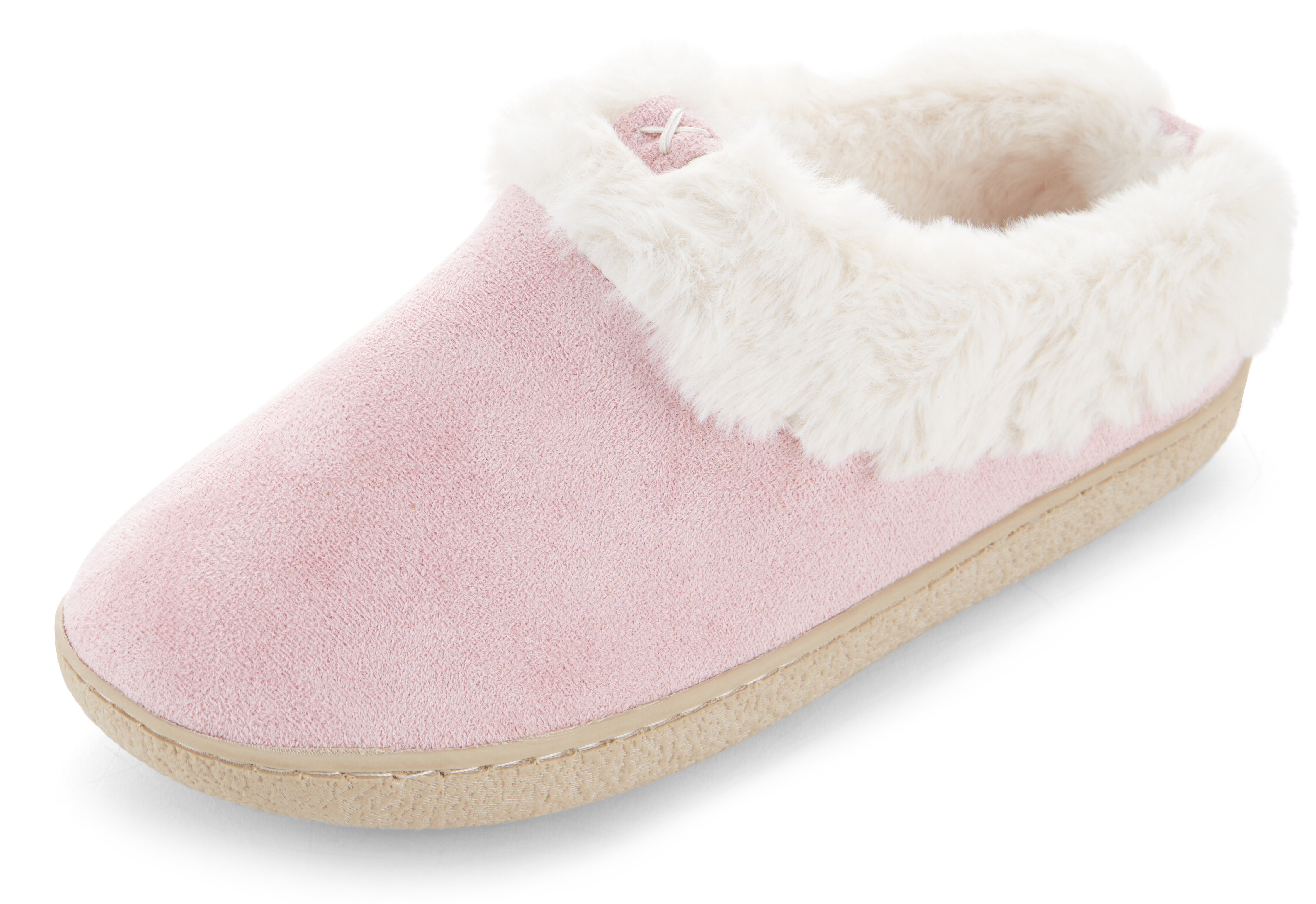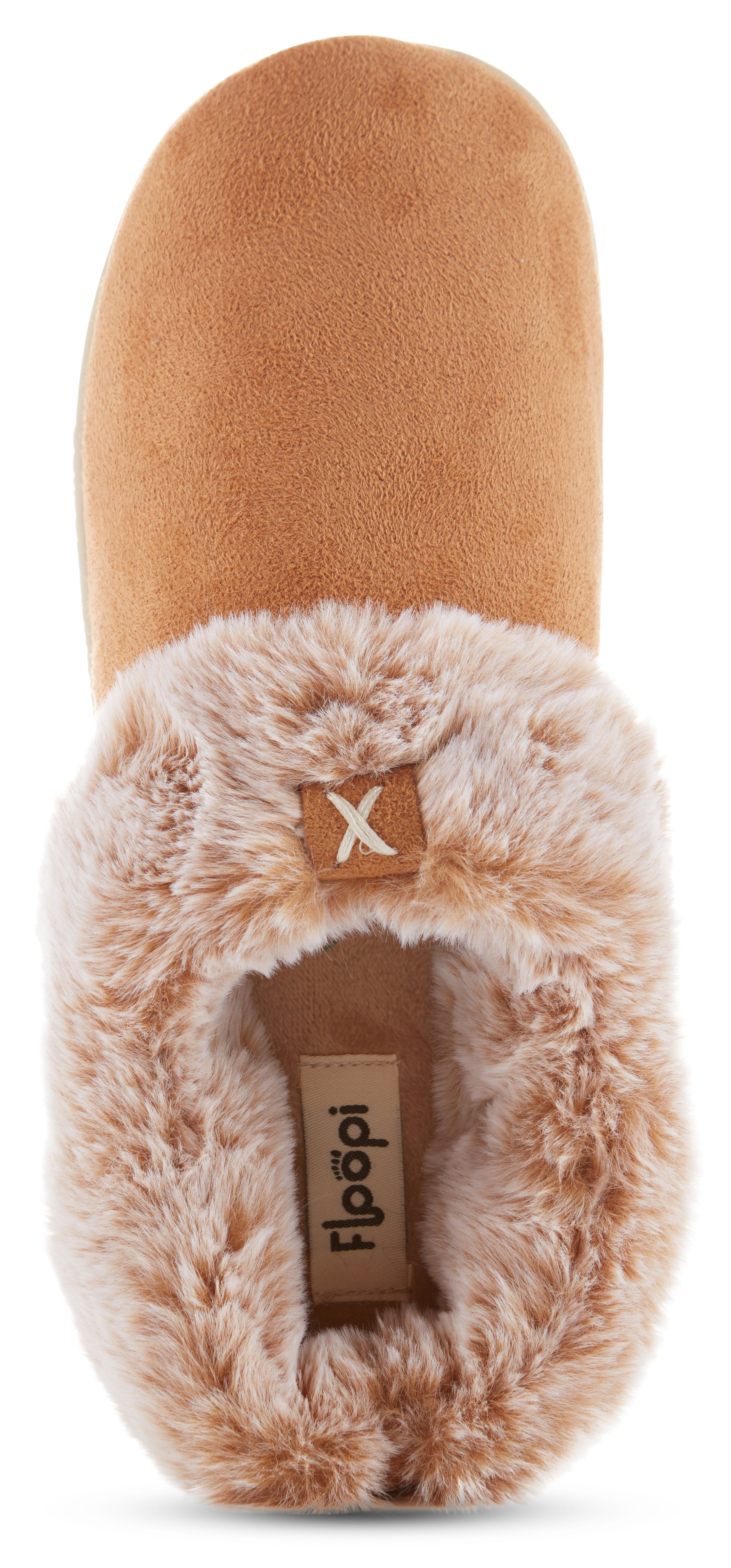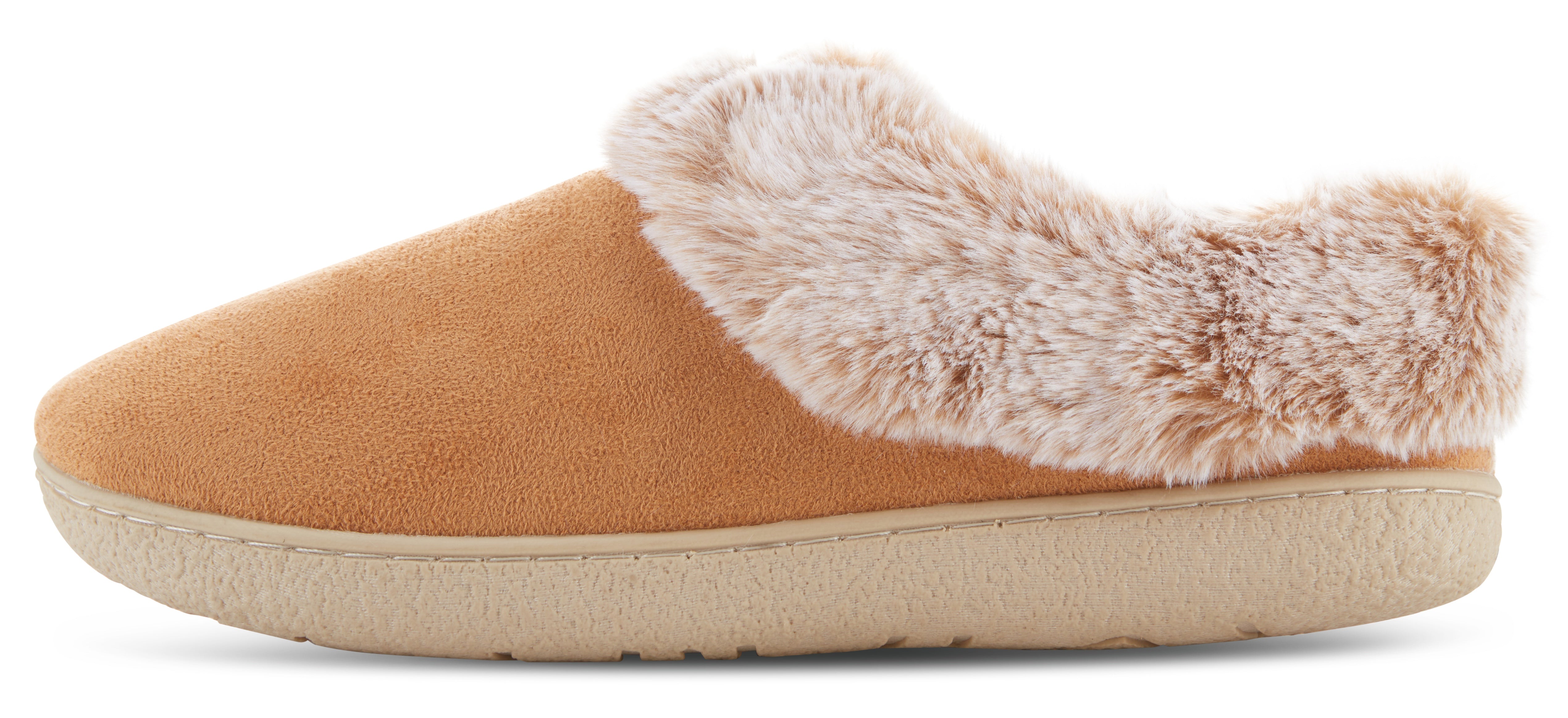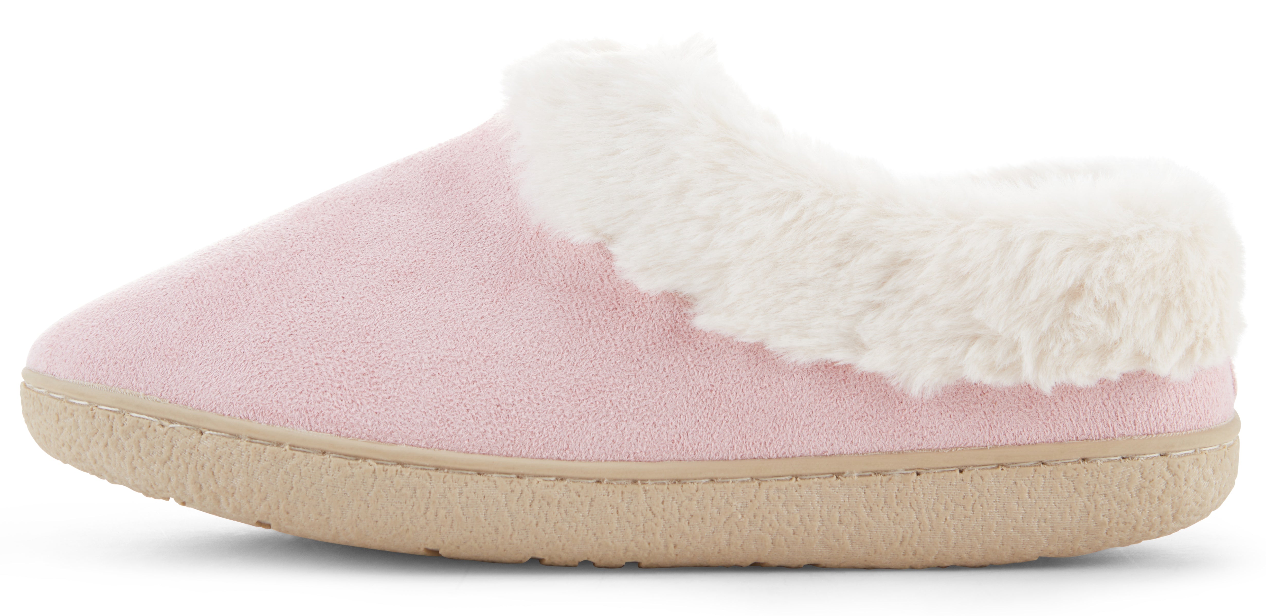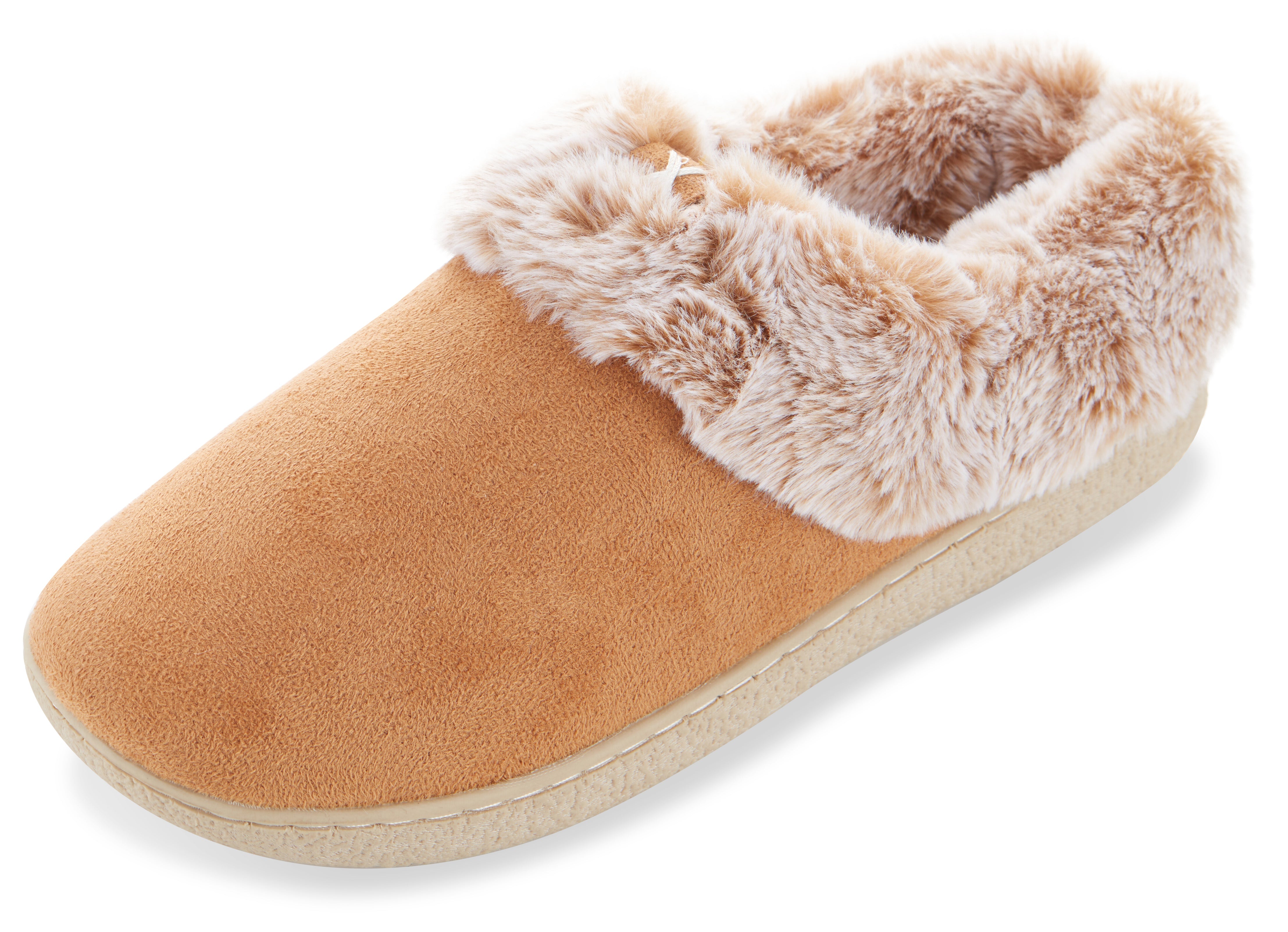 Slip into comfort and style with our Microsuede Closed Back Clog Slipper. The soft microsuede upper is paired with a plush faux fur collar, finished with a playful “X” patch for a touch of charm. Inside, velour lining and a memory foam insole keep your feet warm, cushioned, and cozy. The closed-back design gives you a secure fit, while the durable anti-skid outsole makes these slippers perfect for both relaxing indoors and stepping outside in comfort.