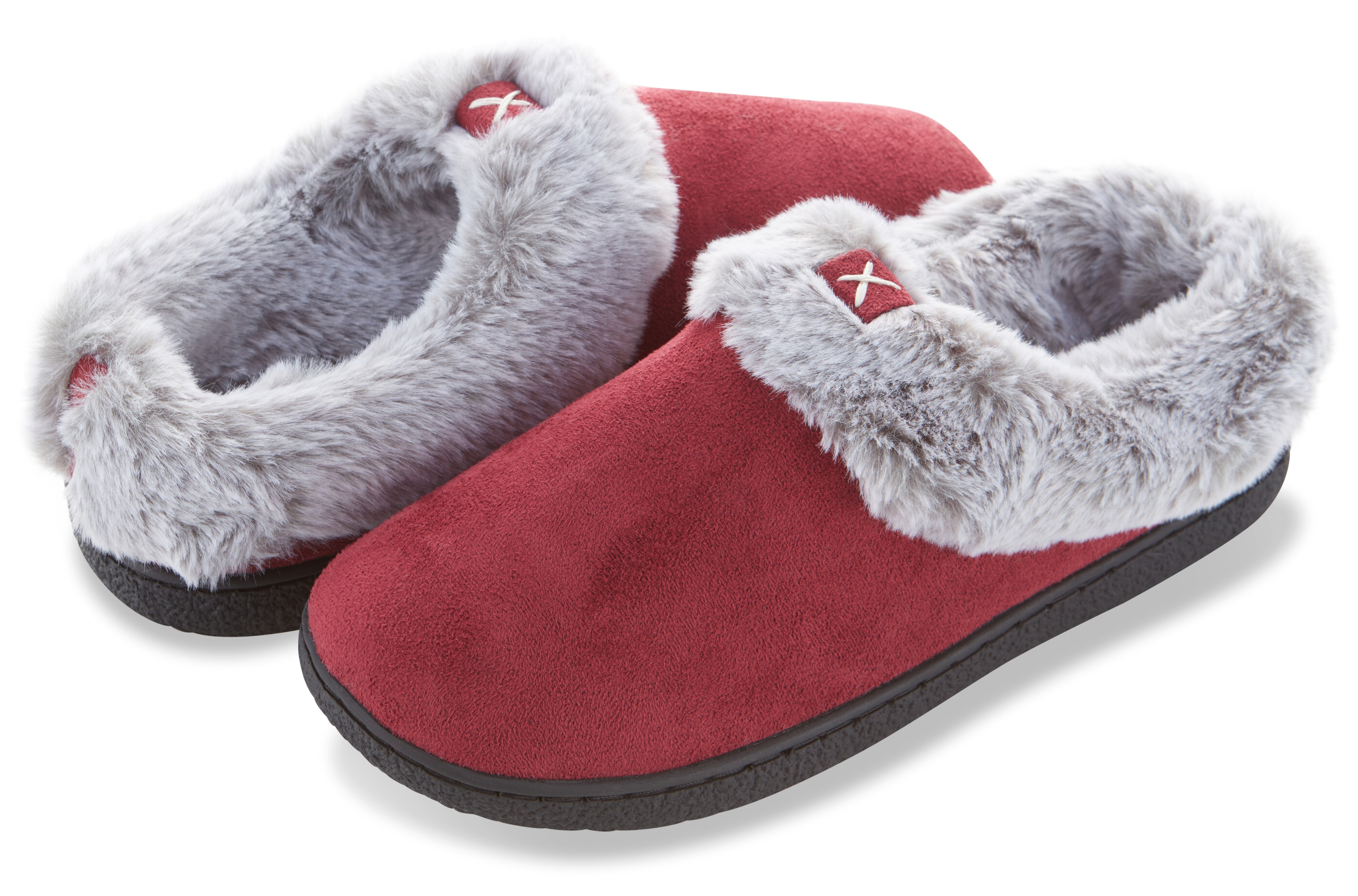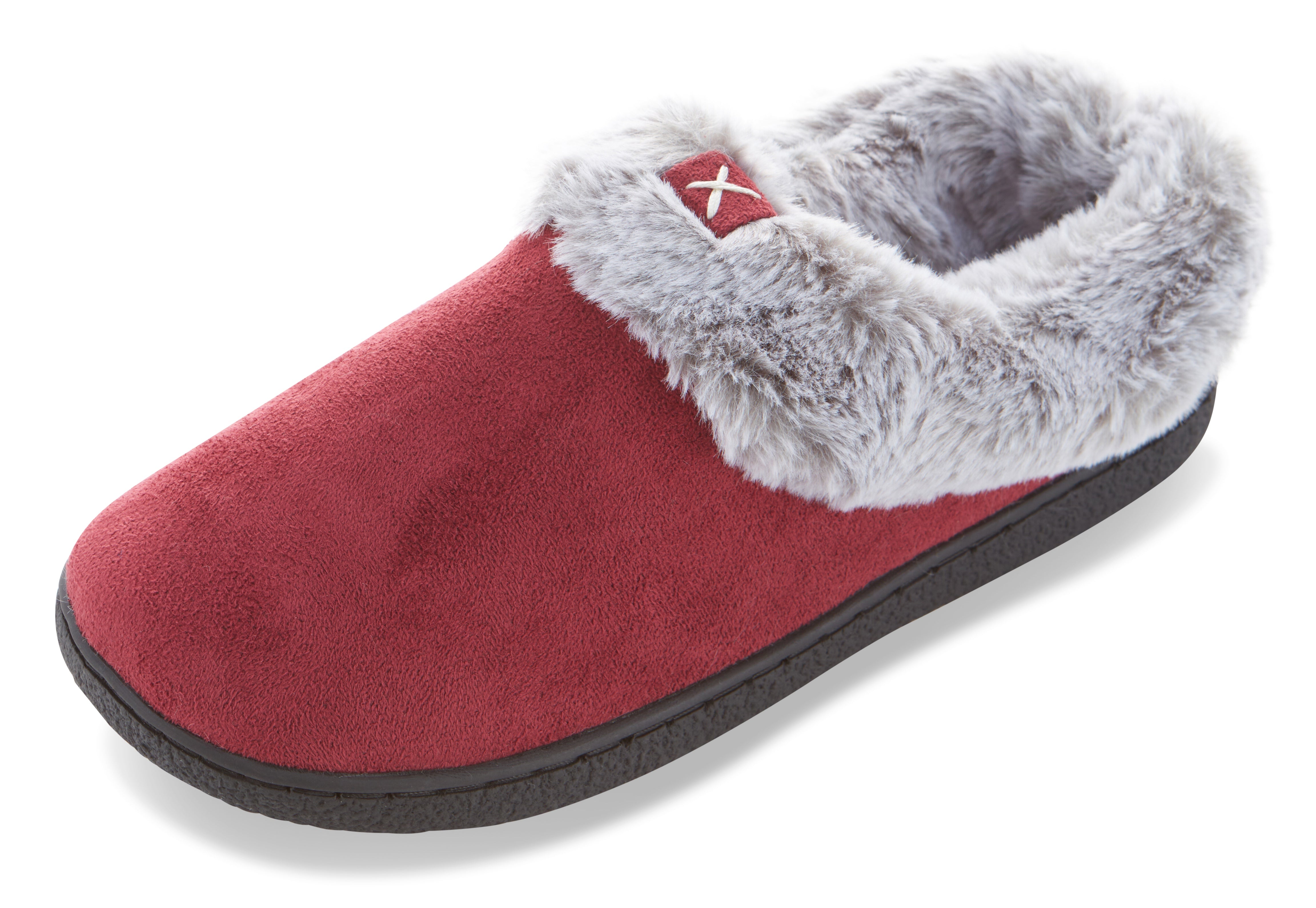 Women’s Microsuede Closed Back Clog Slipper with “X” Patch
