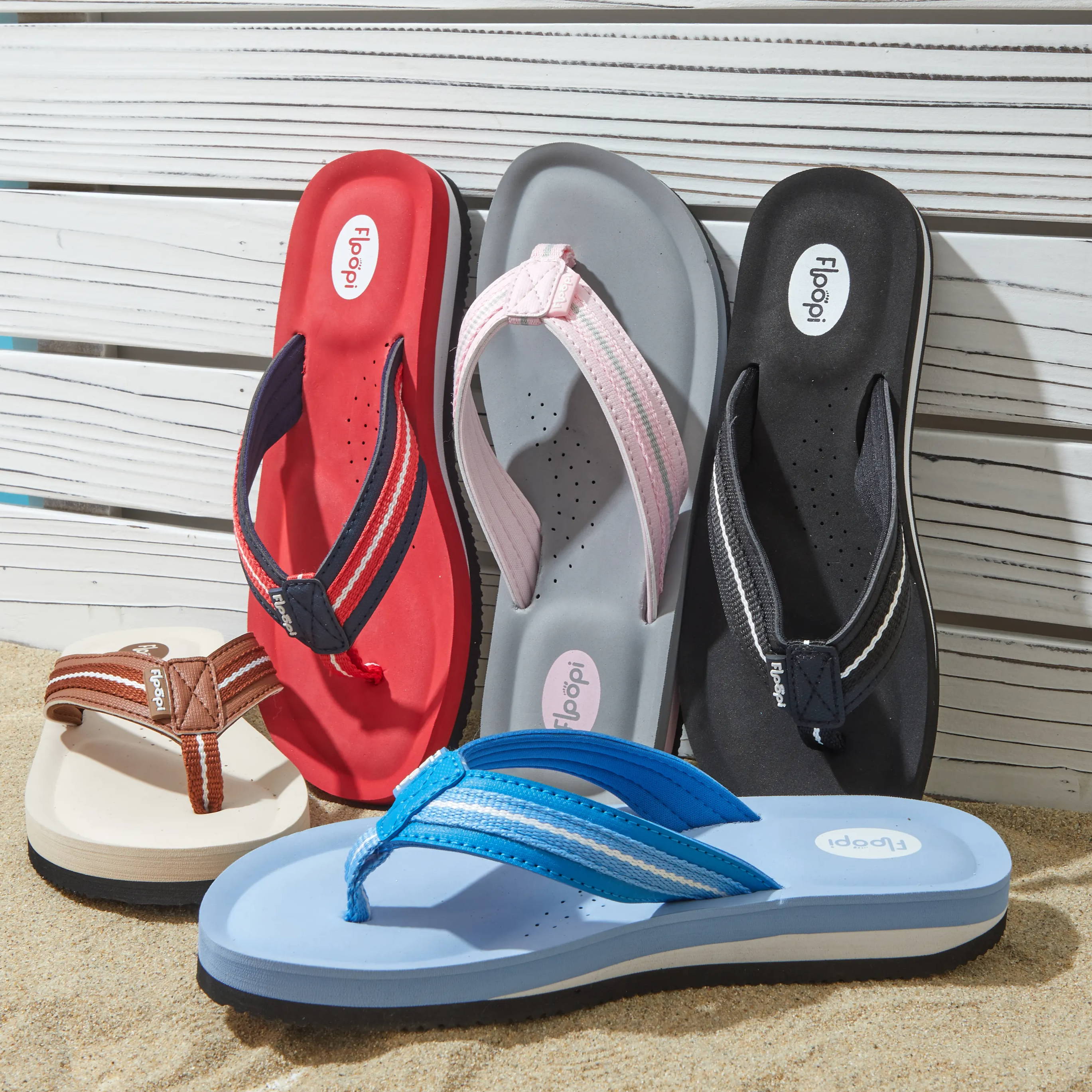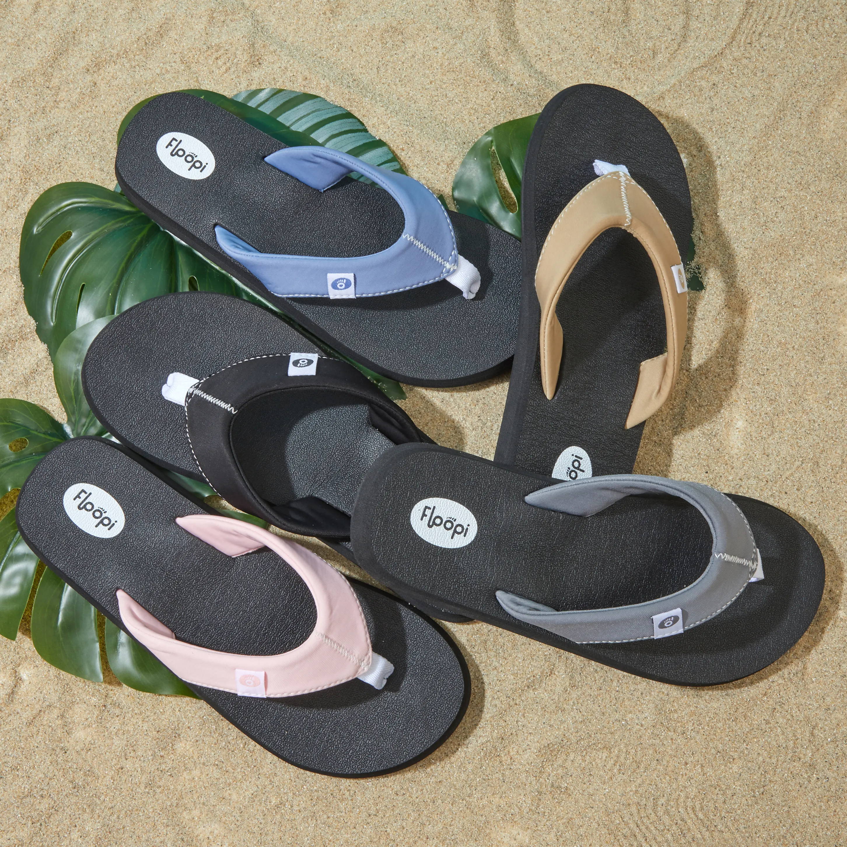 Discover a combination of supreme comfort and fashion thanks to our arc supporting footbed available in all of our Floopi summer flip flops. It is guaranteed to make you feel like you’ve never left the comfort of your bed or better yet in feet heaven. You can now enjoy long excursions to the beach, social outings or vacations become even more restful by taking all the pressure off your feet.